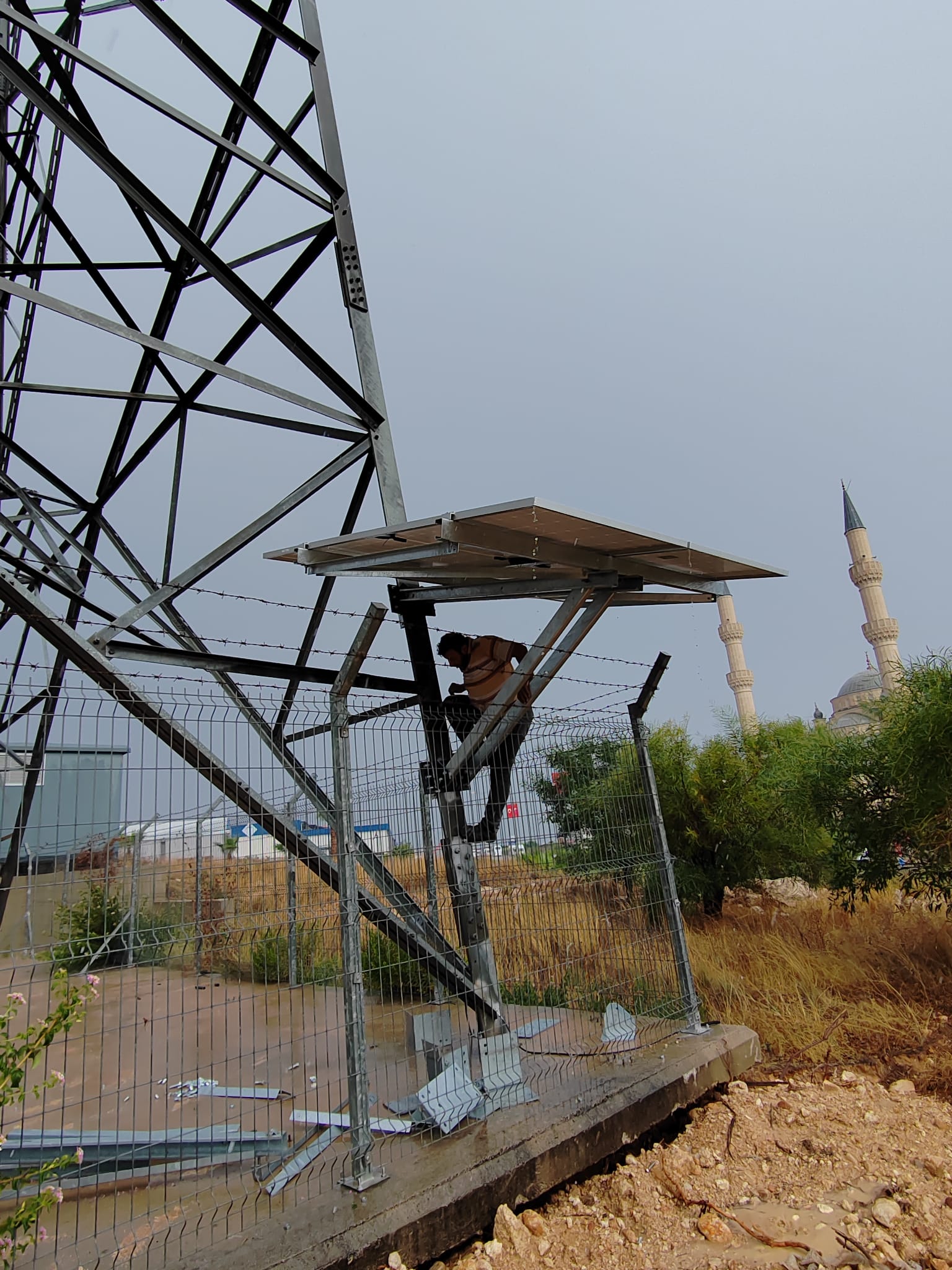 Kule Üstü GES Çelik Konstrüksiyon ürünümüz telekom baz istasyonlarının elektrik ihtiyaçlarını karşılamak için özel olarak tasarlanmıştır. Uygun sayıda güneş panelini bu sisteme dahil etmek için, kule kolonlarına görseldeki çelik yapı montajlanmaktadır. Her baz istasyonun kendine has ağırlık taşıma kapasitesi olduğu için bu çelik yapıyı tasarlanmak için detaylı mühendislik bilgisine sahip olmak gerekmektedir. Bu ürünlerimiz hali hazırda Turkcell gibi telekom şirketinin baz istasyonlarında aktif olarak kullanılmaktadır. Birden farklı baz istasyonu tasarımları olduğu için, her istasyona uygun tek bir modele tasarımına sahibimiz. 2023 yılından bu yana 780 adet baz istasyonunda aktif olarak çeliklerimiz kullanılmaktadır.